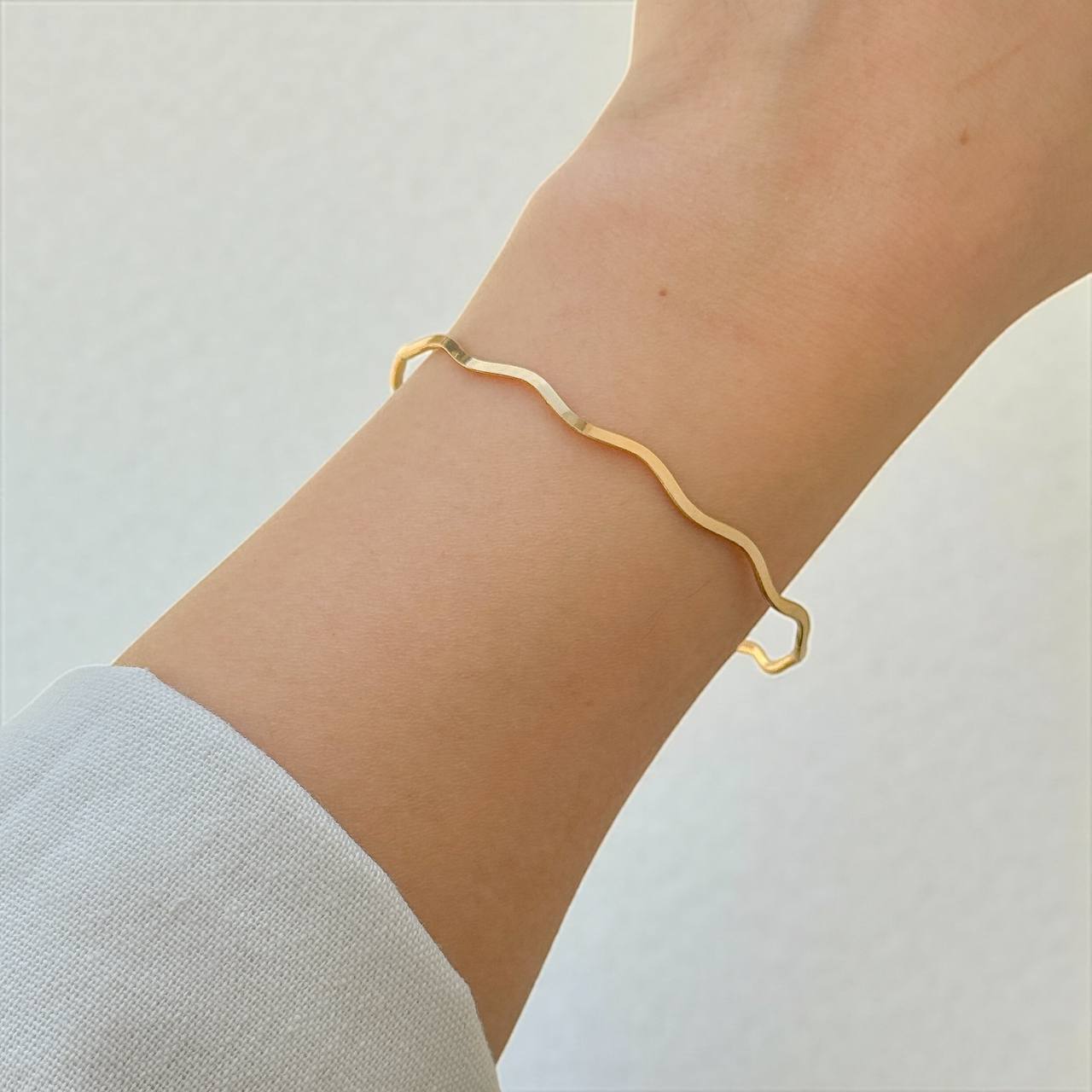 النگو موج، با طراحی الهامگرفته از امواج نرم و روان دریا، نمادی از زندگی، حرکت و پویایی است. خطوط منحنی و موجدار این النگو، زیبایی طبیعی و آرامشبخش را به دستان شما میآورد و استایلی خاص و متفاوت ایجاد میکند.