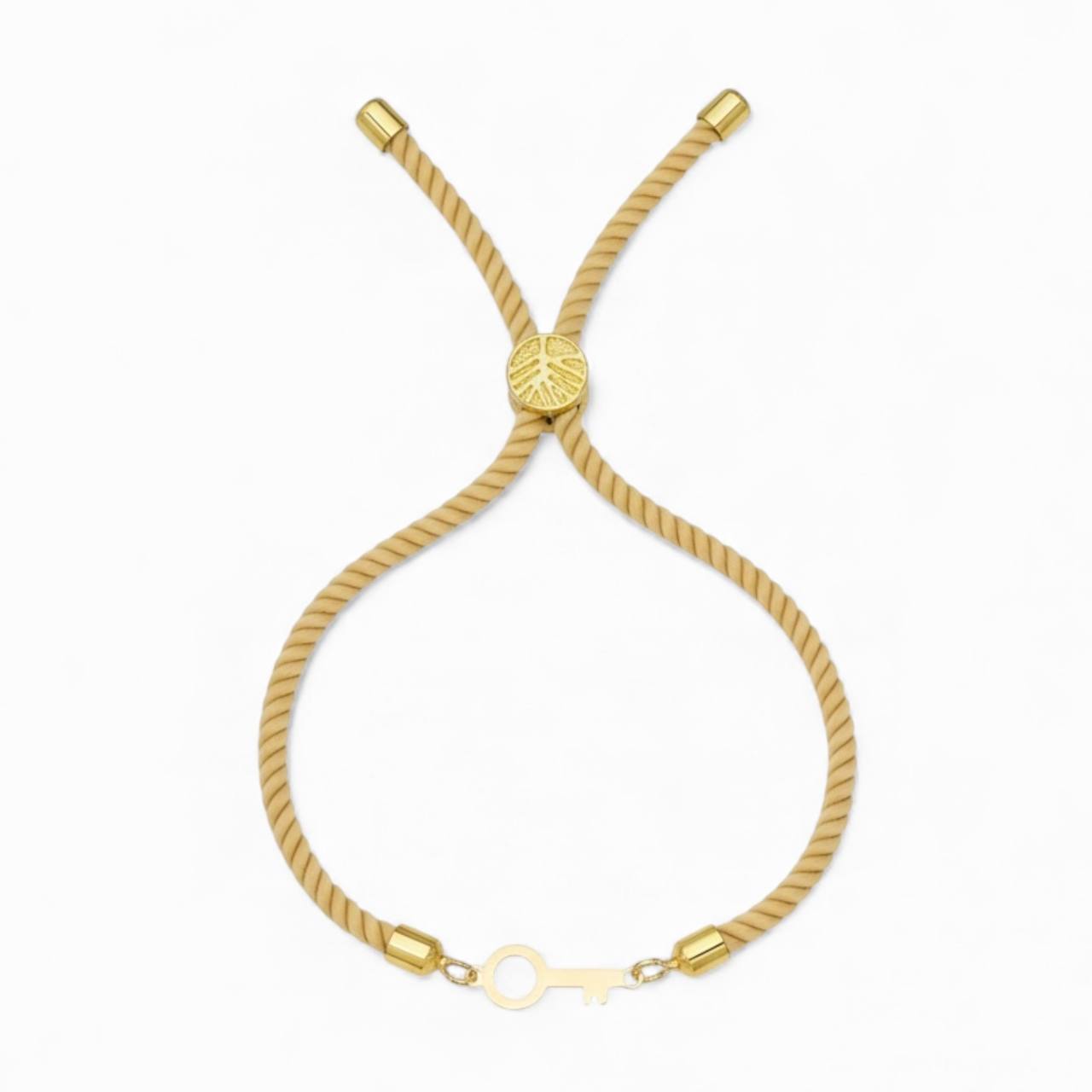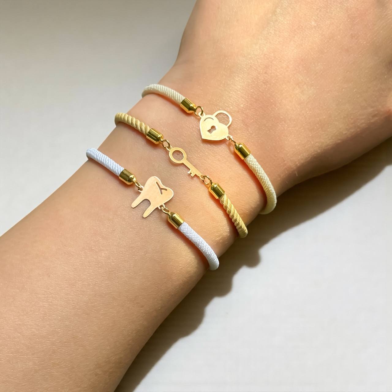 دستبند کلید دایره با طراحی ظریف و مدرن، ترکیبی از نماد کلید و فرم دایره را در کنار هم قرار داده تا معنایی عمیق از آغاز، گشودن درهای جدید و انرژی مثبت را منتقل کند. کلید در مرکز دایره، نشانهای از اعتماد، امنیت و آغاز مسیرهای تازه است.