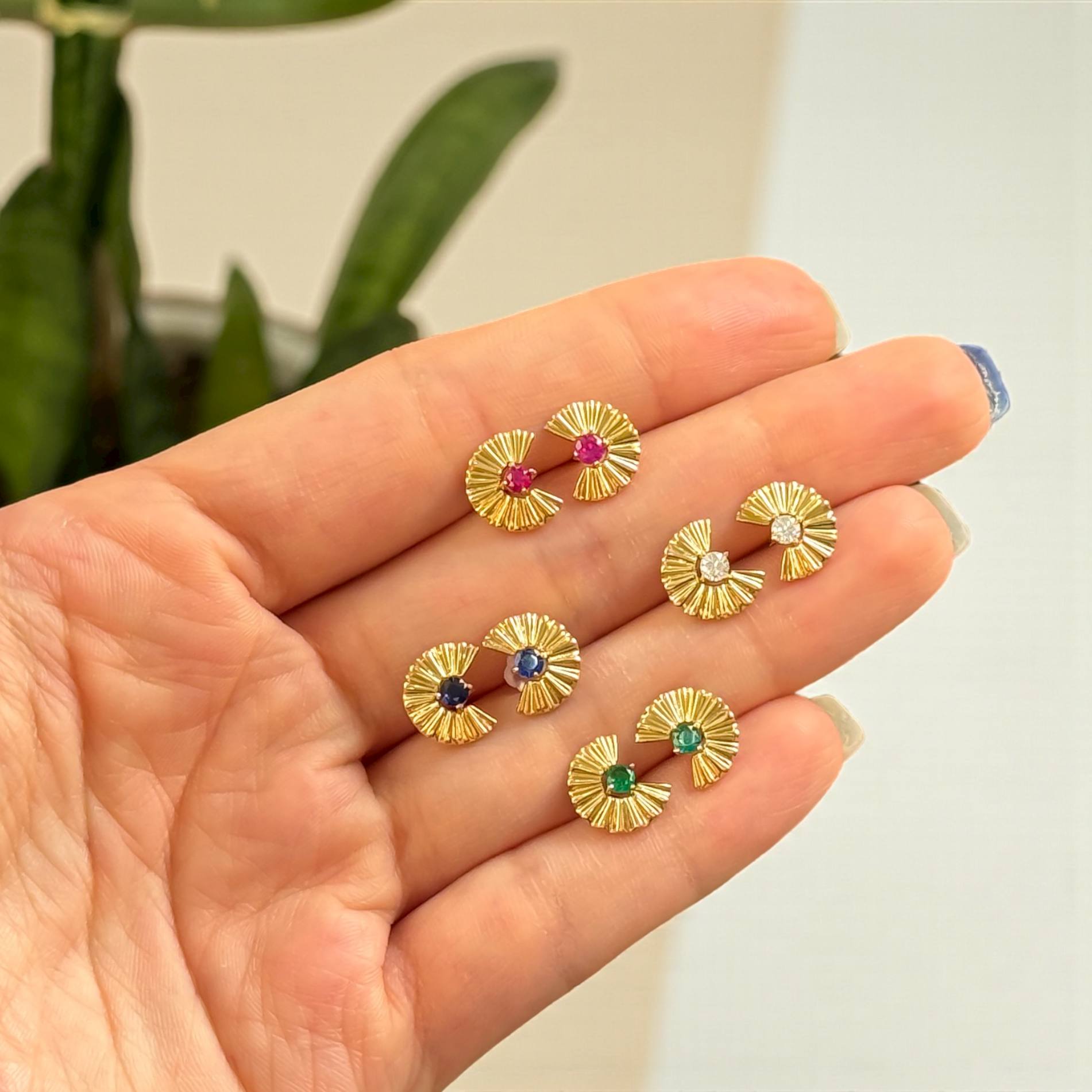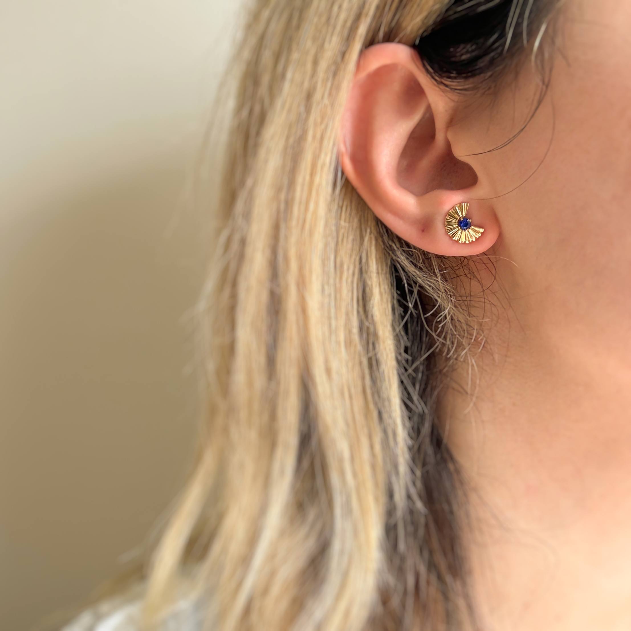 درخشش آفتاب را با خود همراه داشته باشید. گوشواره خورشیدی از طلای باکیفیت ساخته شده و با طراحی مدرن و الهامگرفته از پرتوهای خورشید، جلوهای خاص و چشمنواز به استایل شما میبخشد.